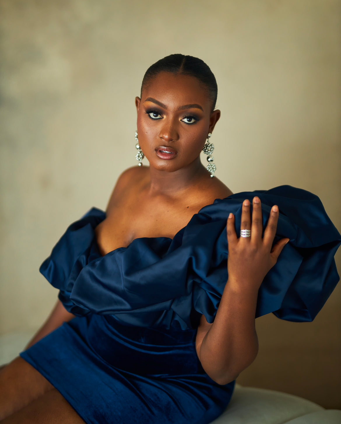 Explore elegance in our one-shoulder velvet dress, boasting a fitted silhouette and a gracefully pinched balloon neckline.